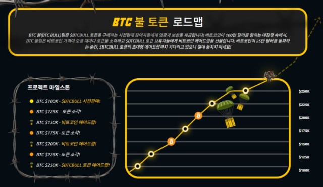 비트코인이 250,000달러까지 상승하면, 프로젝트는 총 발행량의 10%에 해당하는 BTC Bull Token을 일회성으로 추가 에어드롭한다.