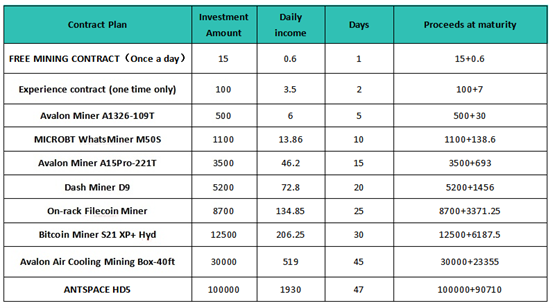 After purchasing the contract, the income will be automatically credited to your account the next day. When the account balance reaches $100, you can choose to withdraw to your digital currency wallet, or continue to purchase contracts to get more income.