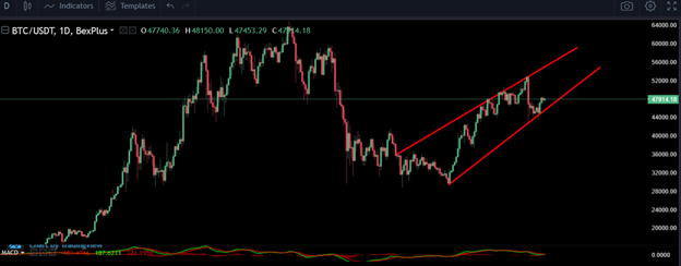 The pump and dump were all to do with litecoin. Due to a piece of fake news that the retailer Walmart would begin to accept cryptocurrency on all of its e-commerce websites, the price of litecoin (LTC) rose to more than $237. Such great news injected confidence into investors’ hearts that cryptocurrencies are getting more recognition. Benefiting from the newfound confidence, bitcoin gained almost 10%. But the news was soon proven to be fake and the bursting of hope drove bitcoin’s price down to a much lower level, almost breaking the $43,000 support.