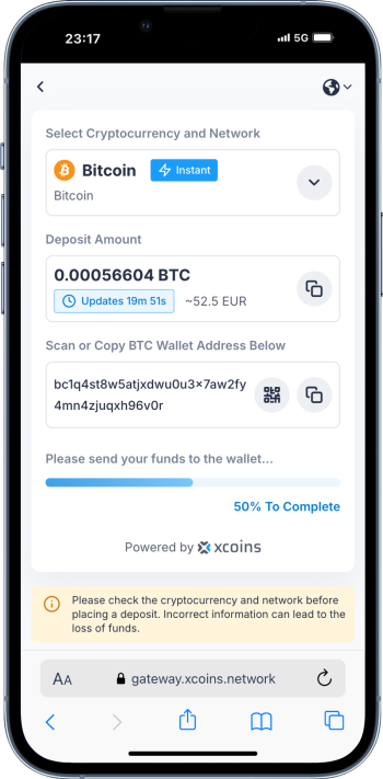 Przed wysłaniem sprawdź, czy wybrałeś poprawną sieć (np. ERC20 vs TRC20 dla USDT) oraz wysokość opłaty. Pomyłka może skutkować utratą środków. Środków przesłanych w krypto nie można cofnąć ani anulować.