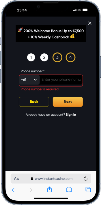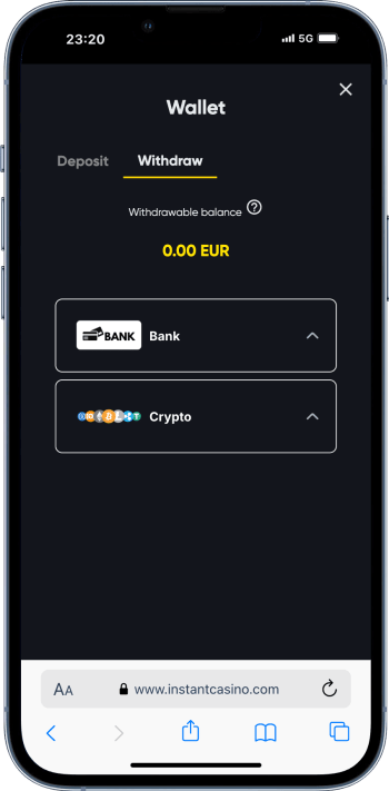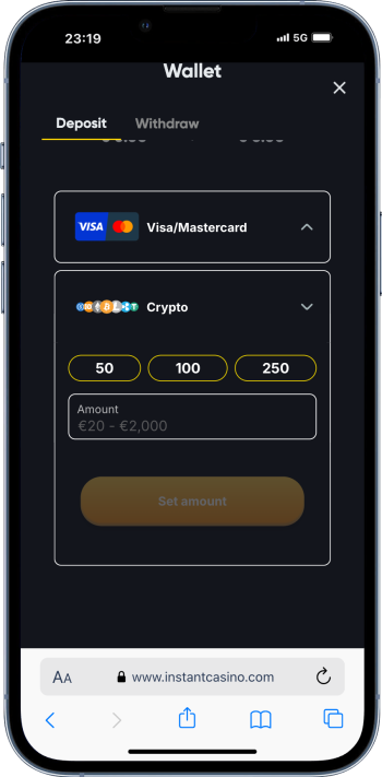 Wpłata środków do bukmachera z krypto nie jest trudna. Poniżej znajdziesz przykład wpłaty na Instant Casino, które znajduje się w naszym rankingu bukmacherów kryptowalutowych.