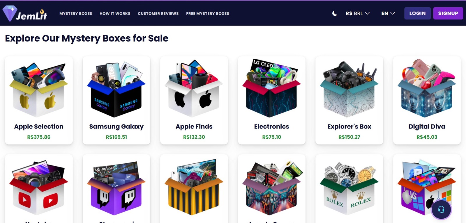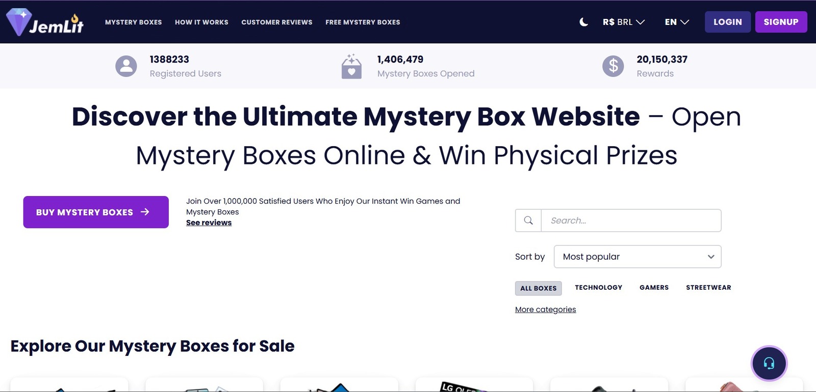 A JemLit se consolidou como a principal plataforma de caixas misteriosas no Brasil, pois oferece um catálogo diversificado de produtos de alto valor. Só para ilustrar, inclui iPhones, notebooks, consoles de videogame, acessórios de luxo e gadgets tecnológicos.