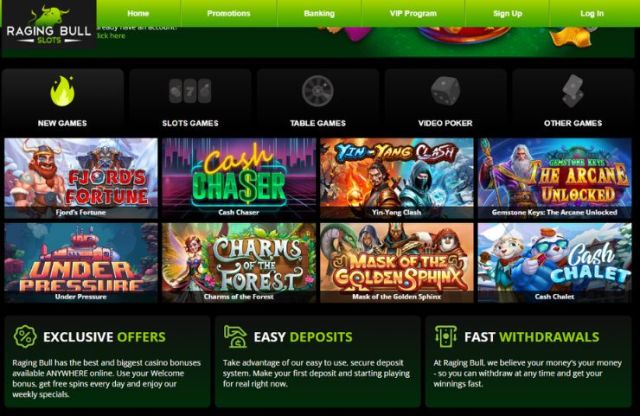 After depositing, return to the Raging Bull game library. Scroll through the available online slots, table games, and video poker options to find your preferred games and play for real money.
