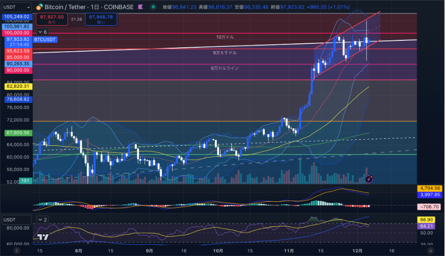 Following the $100,000 milestone, a drop attributed to profit-taking sales occurred. This sudden decline brought the price down to $91,152.80 at one point. According to data from Coinglass, $3.348 billion worth of long positions were liquidated within an hour. Yesterday’s market saw significant volatility, with candlesticks forming long upper and lower shadows. Bitcoin is currently trading around $97,500.