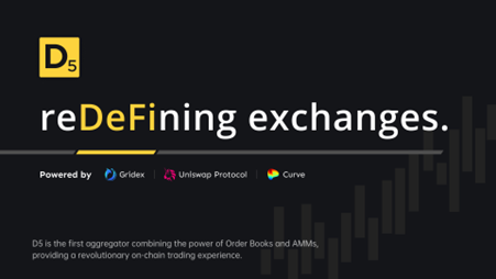 D5 Exchange is the first exchange to combine the advantages of both AMM and order books and is the Ethereum ecosystem’s most liquid and dynamic DEX because its automatic router can aggregate liquidity from external DEXs like Uniswap (V2+V3) and Curve to achieve internal liquidity and the best exchange rate.