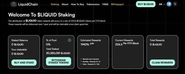 Staking plays a central role in the $LIQUID presale structure. High APYs are currently available, with yields designed to decrease gradually as more participants stake tokens. This encourages early network alignment while preventing unsustainable long-term emissions.