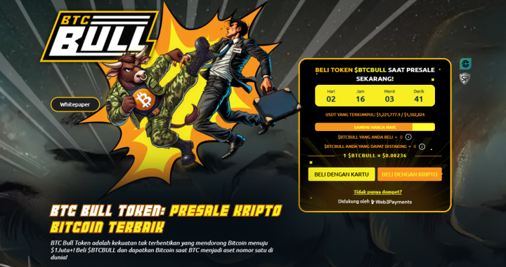 Presale Bitcoin Bull telah menjadi salah satu trending crypto segera setelah diluncurkan. Proyek ini berhasil mengumpulkan lebih dari $1 juta dalam waktu 48 jam setelah peluncuran presale.