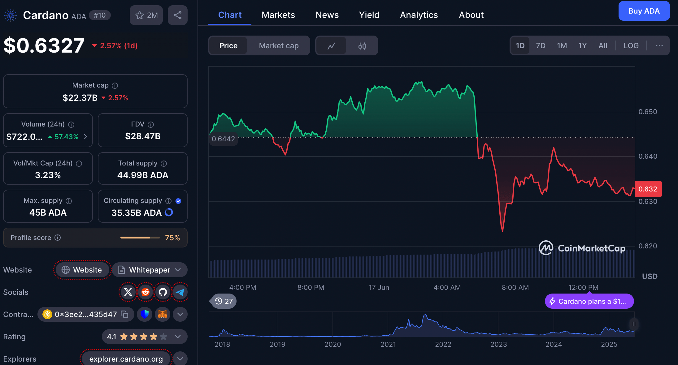Cardano mencatat penurunan yang lebih dalam, anjlok sebesar 2,51% dan kini diperdagangkan di harga Rp10.294. Penurunan ini disebut para analis sebagai bagian dari pola korektif ABC setelah lima gelombang kenaikan dalam struktur Elliott Wave. Titik support teknikal saat ini berada di level Rp10.063, yang kemungkinan menjadi titik pantulan potensial jika tekanan jual mereda dalam waktu dekat.