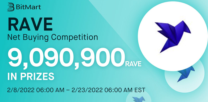 Ravendex (RAVE) listed on BitMart at 6:00 AM on January 10, 2022 EST! To celebrate the listing of RAVE, we are giving away 9,090,900 RAVE in our RAVE Net Buying Competition Events!