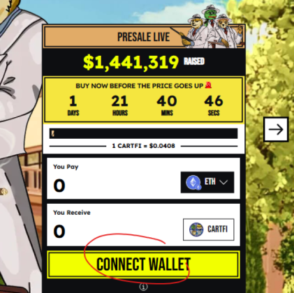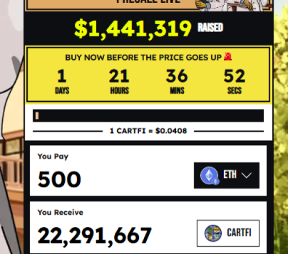 The platform will auto-calculate the equivalent amount of $CARTFI based on the current presale rate.