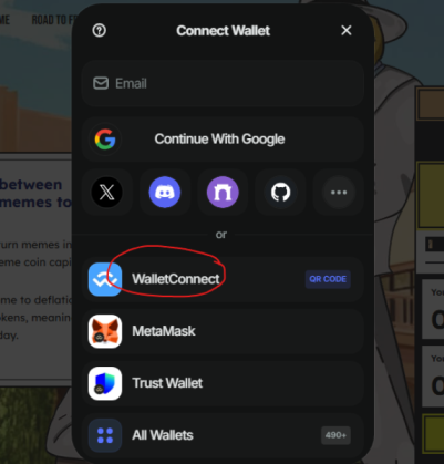 From there, hit the ‘Connect Wallet’ button, choose the Wallet Connect option, and approve the connection in your wallet app.