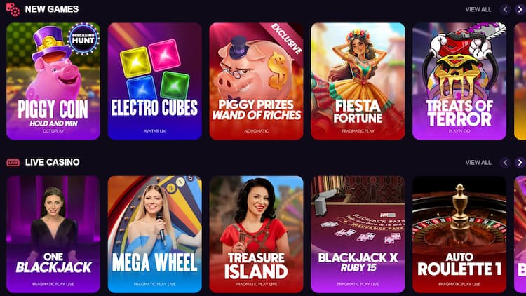 V nabídce casina najdeme více než 3 000 her od předních vývojářů jako jsou Pragmatic Play, NetEnt, Evolution Gaming nebo Relax Gaming. Hráči mohou vybírat mezi moderními výherními automaty, stolními hrami jako je blackjack, ruleta nebo baccarat, a samozřejmě nechybí ani live casino s živými krupiéry. Casino neustále doplňuje nové tituly, čímž zajišťuje rozmanitost a čerstvost herní nabídky.