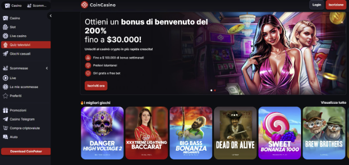 CoinCasino – crypto casinò con bonus benvenuto