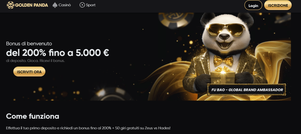 Golden Panda è un casino online senza autoesclusione con un tema orientale accattivante e una ricca selezione di giochi. La piattaforma è curata nei dettagli e funziona senza intoppi sia da desktop che da smartphone. Offre bonus senza deposito molto generosi e frequenti tornei settimanali. Accetta giocatori italiani anche se autoesclusi, poiché non opera sotto licenza AAMS. Supporta pagamenti con criptovalute, Payeer e portafogli digitali. Ottima scelta per chi cerca divertimento costante e promozioni attive ogni giorno.