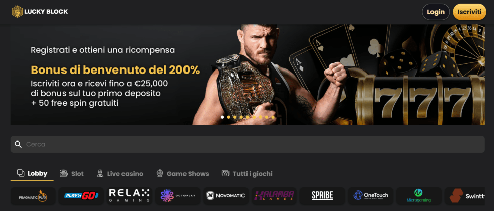 | Lucky Block | Criptocasino completo, registrazione anonima, oltre 6.000 giochi | Solo pagamenti in cripto |
