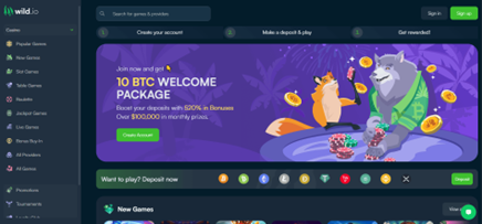 4. Wild.ioLudothèque très riche en jeux casino ludique