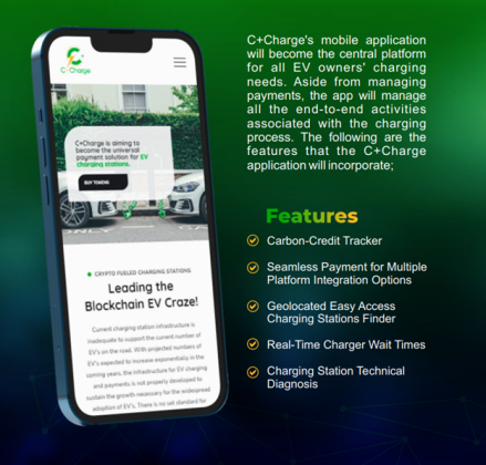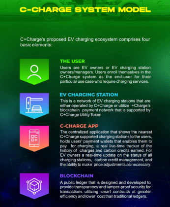 C+Charge seeks to not only standardize a method of payment – by using the CCHG token – and the cost of recharging but also incentivize drivers to adopt EVs by rewarding them as they recharge and further helping the environment.