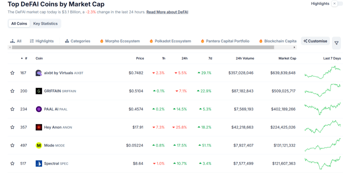 Tandis que la popularité des crypto-monnaies liées à l’AI continue de croître, les cryptos d’agents IA dominent de plus en plus la catégorie. En effet, on a assisté récemment au succès des tokens d’agent IA tels que ai16z et de Virtual Protocol.