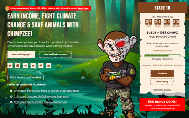 Chimpzee ($CHMPZ) is one Web3 project appearing on the radar of environmentally-friendly investors in the industry as it’s a meme coin that keeps giving to charity.