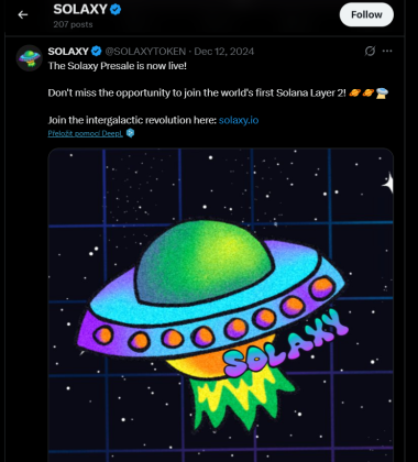 Na rozdíl od běžných meme coinů, které se spoléhají jen na virální popularitu, přináší Solaxy jasně definovanou technickou vizi. Chce se stát prvním skutečným Layer 2 řešením pro Solanu a umožnit tak rychlejší transakce, efektivnější fungování decentralizovaných aplikací a podporu mikroplateb. Předprodej tokenu odstartoval 13. prosince 2024, což tým oznámil připnutým příspěvkem na síti X (Twitter). Ten od té doby nasbíral přes 900 000 zhlédnutí, což naznačuje silnou vlnu zájmu.
