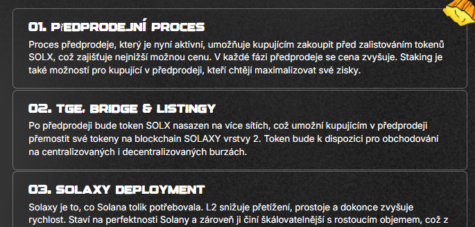 Whitepaper Solaxy kombinuje technické cíle s výraznou dávkou marketingového nadšení. Tým zjevně usiluje o to, aby projekt působil jako seriózní technologická iniciativa, nikoli jen jako další krátkodobý meme coin.