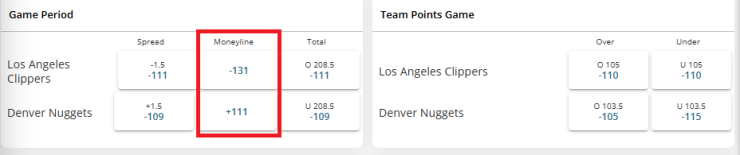 This is a straightforward bet on which team or player will win a matchup. The odds determine the payout on a moneyline bet. In an NBA game between the Los Angeles Clippers (-125) and the Denver Nuggets (+105), a $100 bet on the Nuggets would payout a $105 profit if the bet is successful.