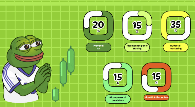 Un altro punto saliente è la spinta sul lato marketing, dato che Fantasy Pepe ha destinato una quota importante della fornitura totale (il 35% della supply) nella promozione del progetto, attraverso i social e con il coinvolgimento di influencer. Questa strategia è fondamentale per attirare nuovi utenti e aumentare la visibilità del token, rendendo Fantasy Pepe un buon investimento nel medio-lungo periodo.