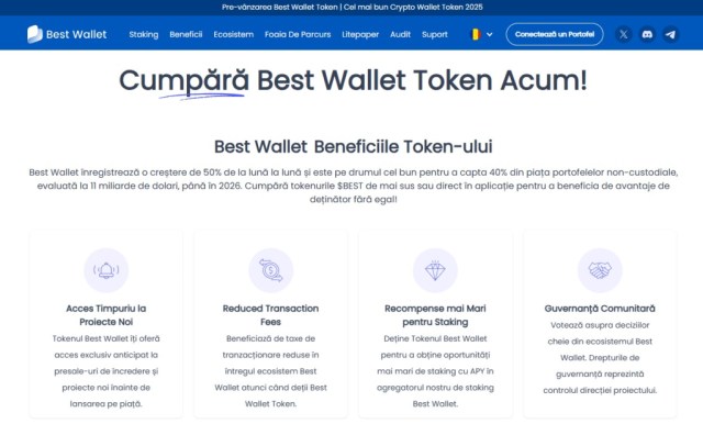 Aici intră Best Wallet – portofelul care oferă mai mult decât un mijloc sigur de stocare a activelor. Este un instrument complet care permite integrarea în spațiul crypto mai ușoară, cu funcționalități de tranzacționare pe DEX, staking, și acces la tokenuri emergente. Proiectul și-a scos în presale tokenul nativ care alimentează întregul ecosistem, oferind deținătorilor beneficii suplimentare.