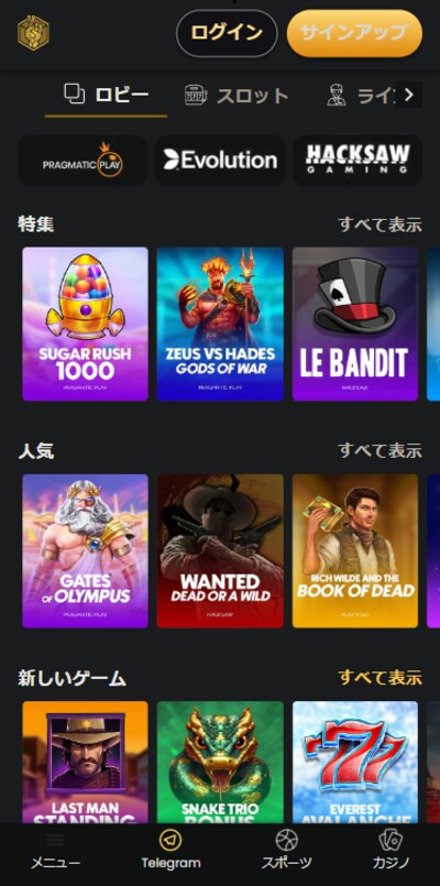 - Mega Dice(メガダイス):スロット、テーブルゲーム、ライブカジノと幅広いジャンルを網羅した総合エンタメサイト!