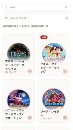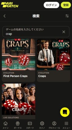 画面上部「検索」から「Craps」と英語で入力しましょう。