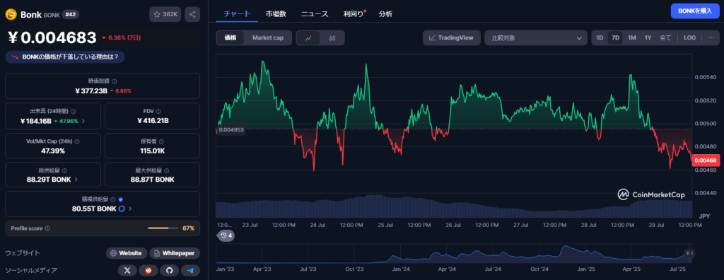低価格で購入できる点も、BONKの大きな魅力だ。少額で大きなリターンを狙いたい投資家にとって、手が出しやすい選択肢となっている。