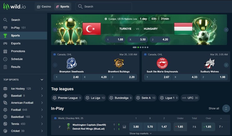 Завершает наш сегодняшний ТОП платформа Wild.io – сайт для криптовалютных ставок с высокими коэффициентами на разные виды спорта. Он известен быстрыми платежами в цифровых активах и широким ассортиментом бонусных программ.