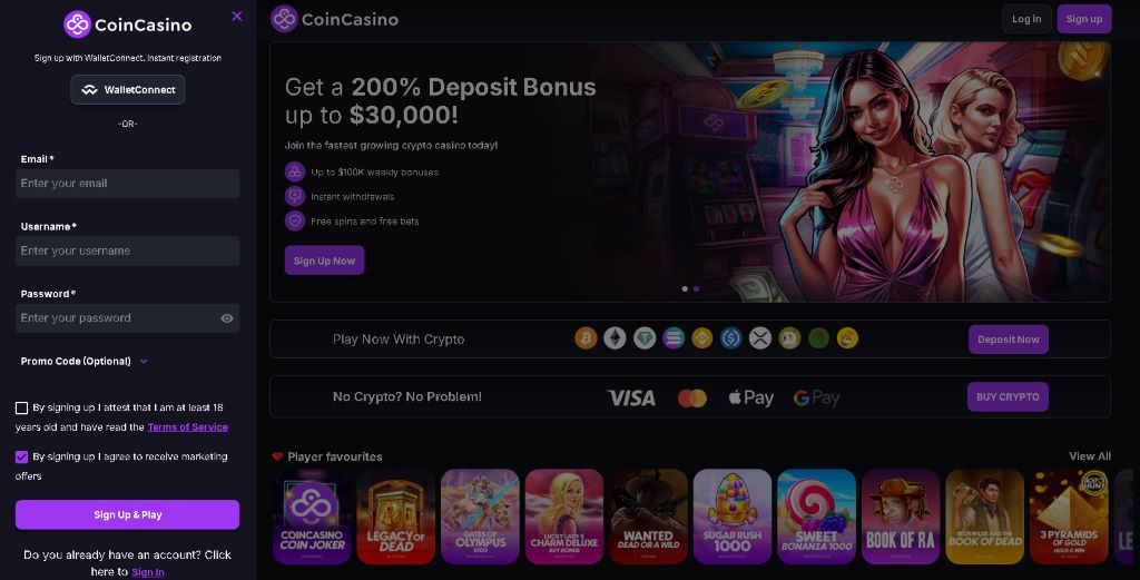 - CoinCasino – Φιλικό προς κρυπτονομίσματα με μεγάλο κατάλογο παιχνιδιών