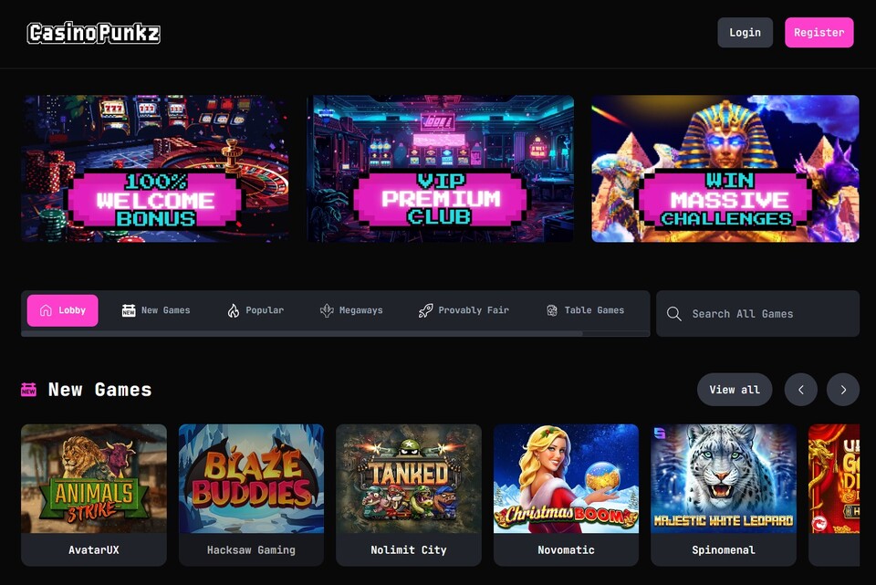 - CasinoPunkz – криптовалютное казино, где игроки могут сохранять полную анонимность, пока наслаждаются передовыми играми и развлечениями, делая ставки и получая интересные бонусы;