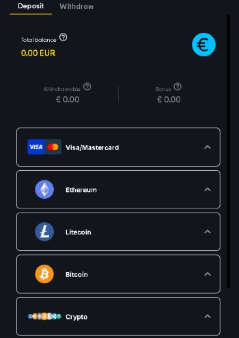 Nakon što ste završili registraciju, vreme je za kripto depozit. Na sajtu ćete pronaći različite opcije za uplatu.