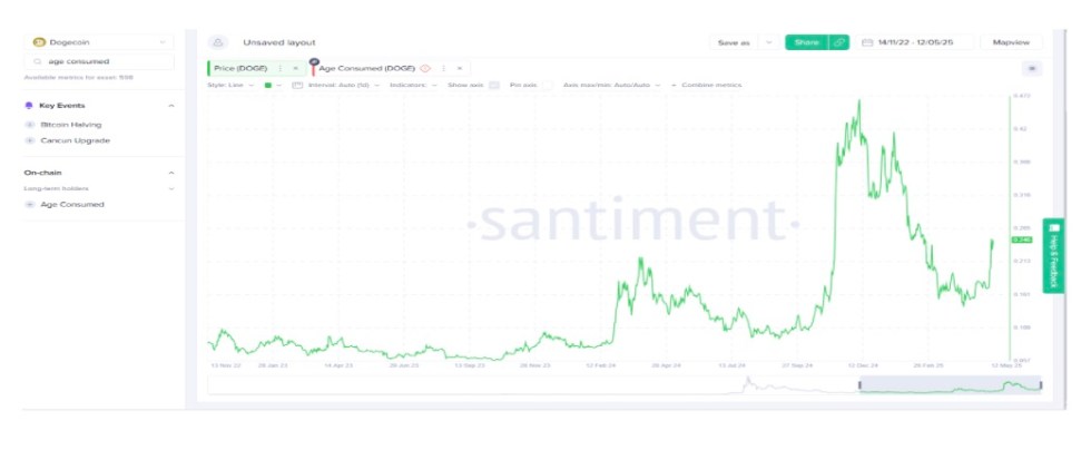 Despite its $36 billion market cap, Dogecoin (DOGE) shows signs of fatigue. Recent data shows long-term holders are offloading, with the Age Consumed metric spiking to high levels. For the crypto expert, this indicates fading confidence in Dogecoin’s (DOGE) sustainability.