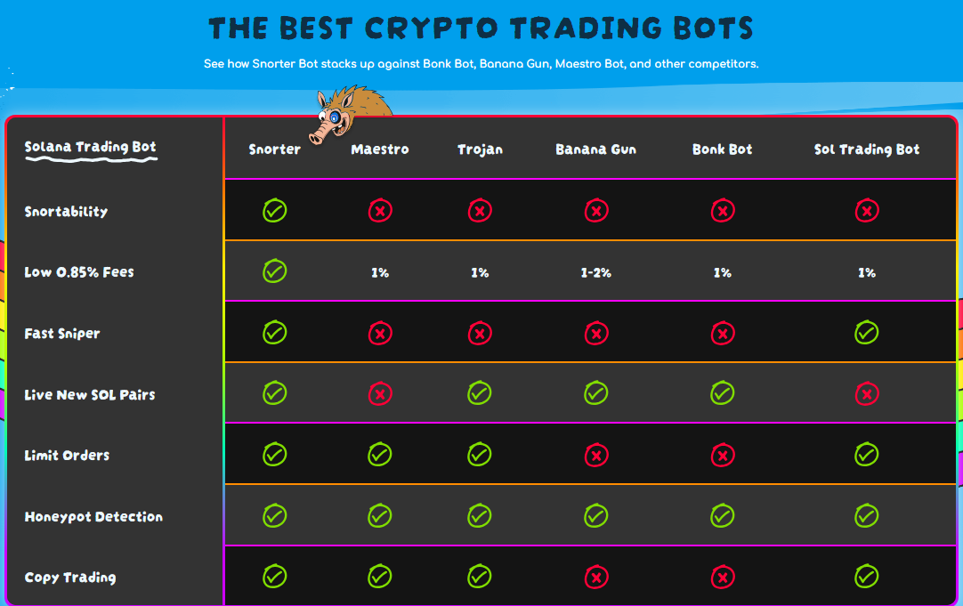 作為一款 全市場適配的交易機器人,Snorter 的設計目標是:高效捕捉利潤、識別突破行情,並在散戶 FOMO 湧入之前為用戶搶佔先機 —— 無論牛市還是熊市。其核心優勢在於 從噪音中篩選出高品質代幣,確保交易者有機會在機會消失前鎖定收益。