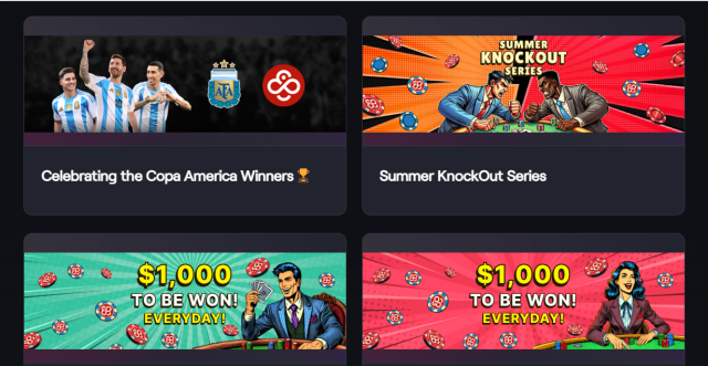 BC Casino è un sito di poker crypto con concessione Anjouan Gaming e prevede molteplici misure per il gioco responsabile. La gamma di prodotti coinvolge poker online, casino online, scommesse sportive, ippica e lotterie. Ci ha sorpreso il comparto dei bonus, con un’offerta di benvenuto del 100% fino a € 20.000 suddivisa in 4 tranche e 400 free spin. Attualmente ci sono ben 14 promo ricorrenti distribuite tra poker, casinò e gli altri prodotti.