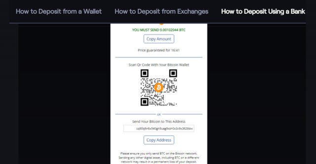 Seleziona una delle valute supportate, come USDT, ETH o BTC, e copia l’indirizzo del portafoglio fornito. Invia l’importo desiderato dal tuo crypto wallet per caricare il saldo di gioco.