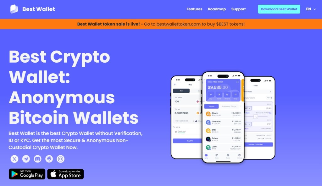 Best Wallet – це a крипто гаманець призначений для новачків, пропонуючи інтуїтивно зрозумілий інтерфейс і багатоплатформену підтримку. Це спрощує керування активами та забезпечує безпеку, одночасно дозволяючи користувачам купувати, обмінювати та робити ставки на різні криптовалюти.