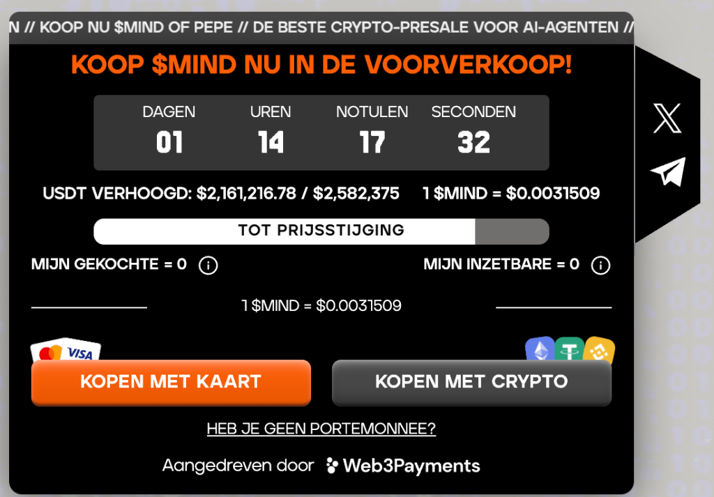Mind of Pepe is net gestart met de presale, maar trekt gelijk de aandacht van traders. Door de AI-agent die zichzelf continu blijft ontwikkelen kan dit een van de grootste crypto stijgers van 2025 worden. In een later stadium kan deze AI-agent zelfs tokens ontwikkelen op de blockchain, token holders krijgen exclusieve vroege toegang tot deze nieuwe tokens.