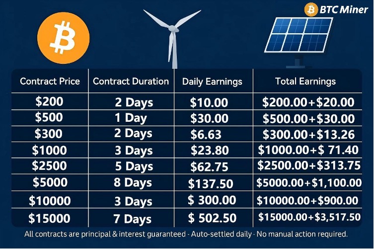 Whether it is a small trial or a large investment, BTC Miner’s diverse contracts and flexible price plans can meet different needs.