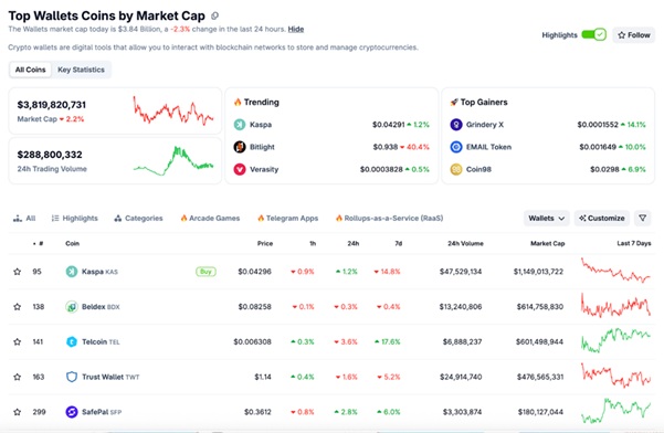 從“錢包類代幣”市值這一估值視角來看,Best Wallet有望切入一個總市值約 38 億美元 的賽道。
