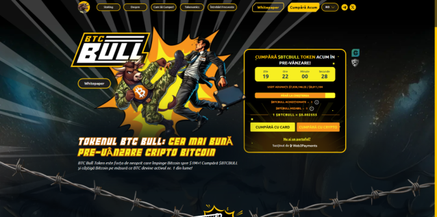 Tokenul $BTCBULL, aflat în ultima fază a pre-vânzării, a atras deja peste 6 milioane de dolari. Prețul actual de 0,002555 de dolari ar putea fi cel mai avantajos preț al $BTCBULL înainte de finalizarea prevânzării. Deținătorii vor beneficia de airdropuri automate de BTC, condiționate de atingerea unor praguri prestabilite, cum ar fi 150k, 200k și așa mai departe.
