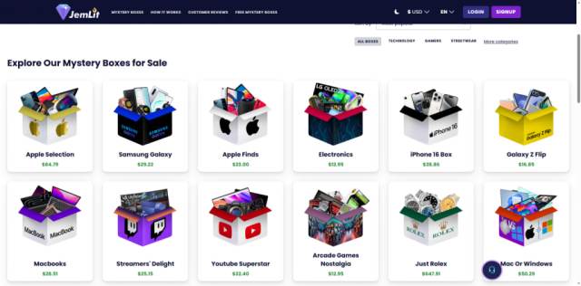 JemLit este una dintre cele mai recomandate platforme de cutii misterioase din 2025. Aceasta se distinge printr-o abordare corectă și echitabilă. Platforma oferă utilizatorilor oportunități de a obține produse valoroase la prețuri accesibile. Utilizatorii trebuie să realizeze propriile cercetări înainte de a accesa platforma.