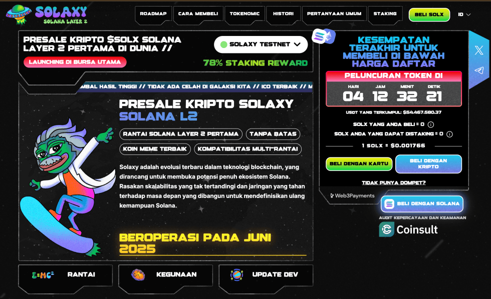 Dengan imbal hasil staking hingga 20% APY, Anda juga bisa mulai mengembangkan aset tanpa kompleksitas teknis yang berlebihan. Harga presale saat ini hanya $0,0557, masih sangat ideal bagi Anda yang mencari peluang awal dengan potensi besar.