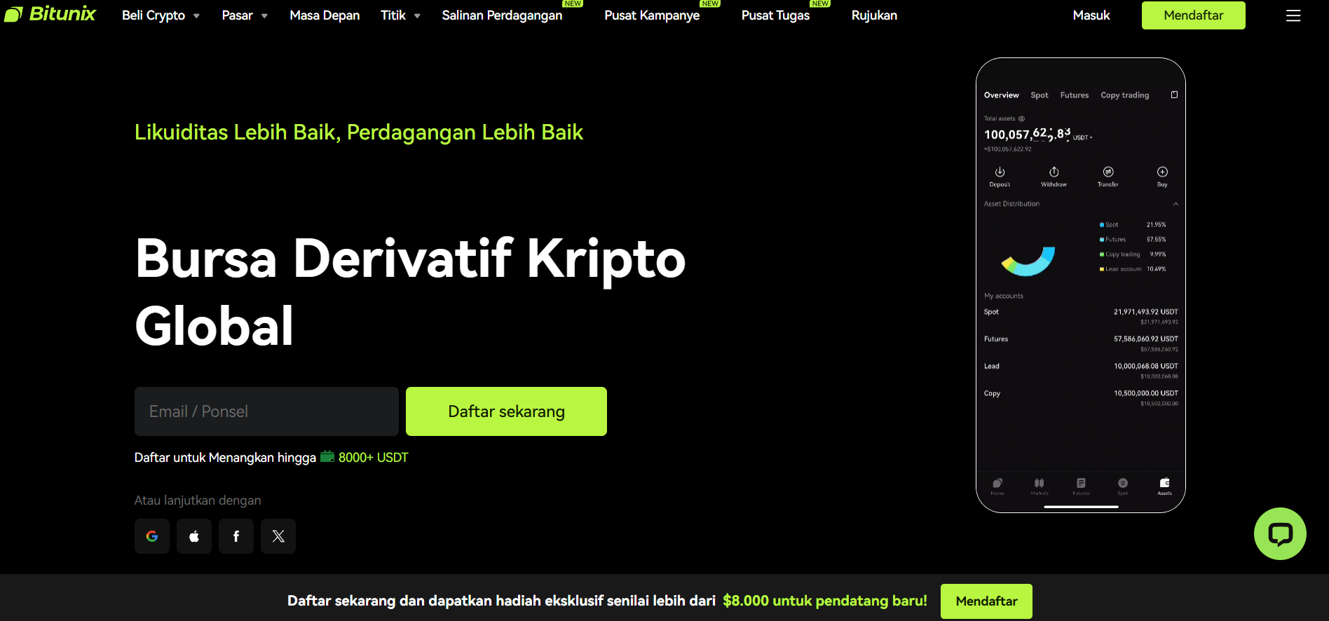 - Bitunix – Exchange yang menawarkan keamanan tinggi dengan berbagai fitur manajemen risiko untuk melindungi trader dari volatilitas ekstrem.