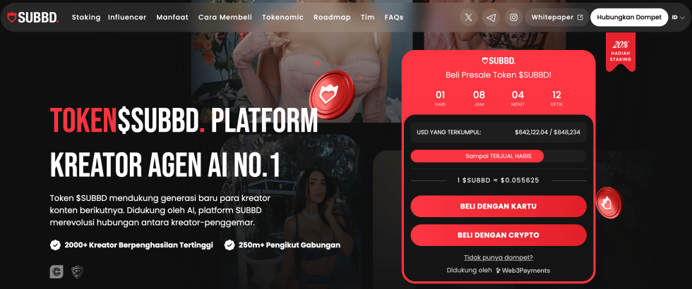 - SUBBD Token ($SUBBD) – Low cap AI crypto dari platform AI berbasis token yang memungkinkan siapa saja menciptakan influencer virtual.