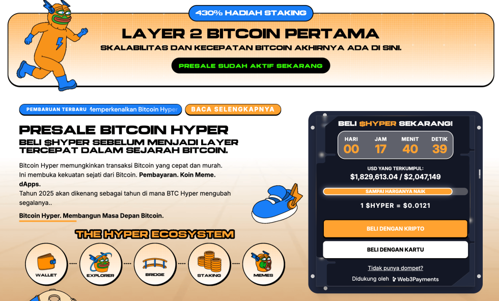 - Bitcoin Hyper (HYPER) – Alternatif ringan Bitcoin dengan biaya transaksi nyaris nol dan waktu konfirmasi super cepat.