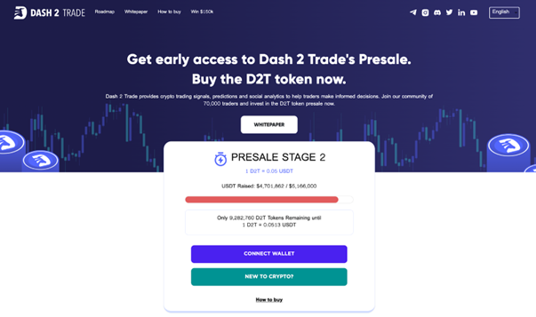Dash 2 Trade has entered the third stage of its presale, after raising over $5M in just two weeks. D2T tokens are selling at 0.0513 USDT now. The fast-paced presale, disregarding the sluggish market, hints at a bull run for the token on exchange listing.